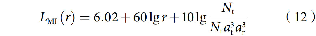 磁感应通信利用收发线圈的磁场耦合进行通信,可以得到磁感应通信的路径损耗公式为