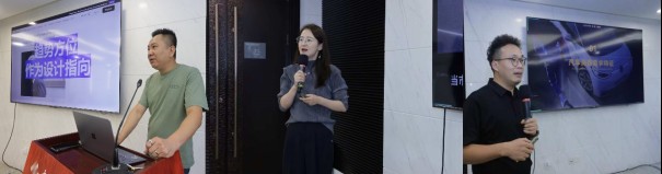 主旨报告环节,王选政教授以“趋势方位与科技美学:智能出行设计的新指向”为题,从宏观视角阐述“趋势方位”与“科技美学”概念,介绍中央美术学院二十余年汽车设计教学积累,以及与相关企业合作的智能座舱项目情况。河南工业大学设计艺术学院教授张婷作“从表皮到内核:CMF设计驱动汽车品牌新叙事”报告,深入探讨CMF设计如何驱动汽车品牌叙事,详细介绍“五维一体”复合型人才培养课程体系,分享与相关企业的合作落地项目情况。旷达科技集团股份有限公司总工程师吴双全以“触感新维度:从材料科技到情感共鸣的价值体验”为题,分析当下汽车消费对舒适感、安全感等需求特征,解读材料温度、柔软度等触感影响因素,并分享TPU弹性纤维、生物基材料等创新应用,展望多感官融合、可持续化、智能响应化的触觉设计未来趋势。