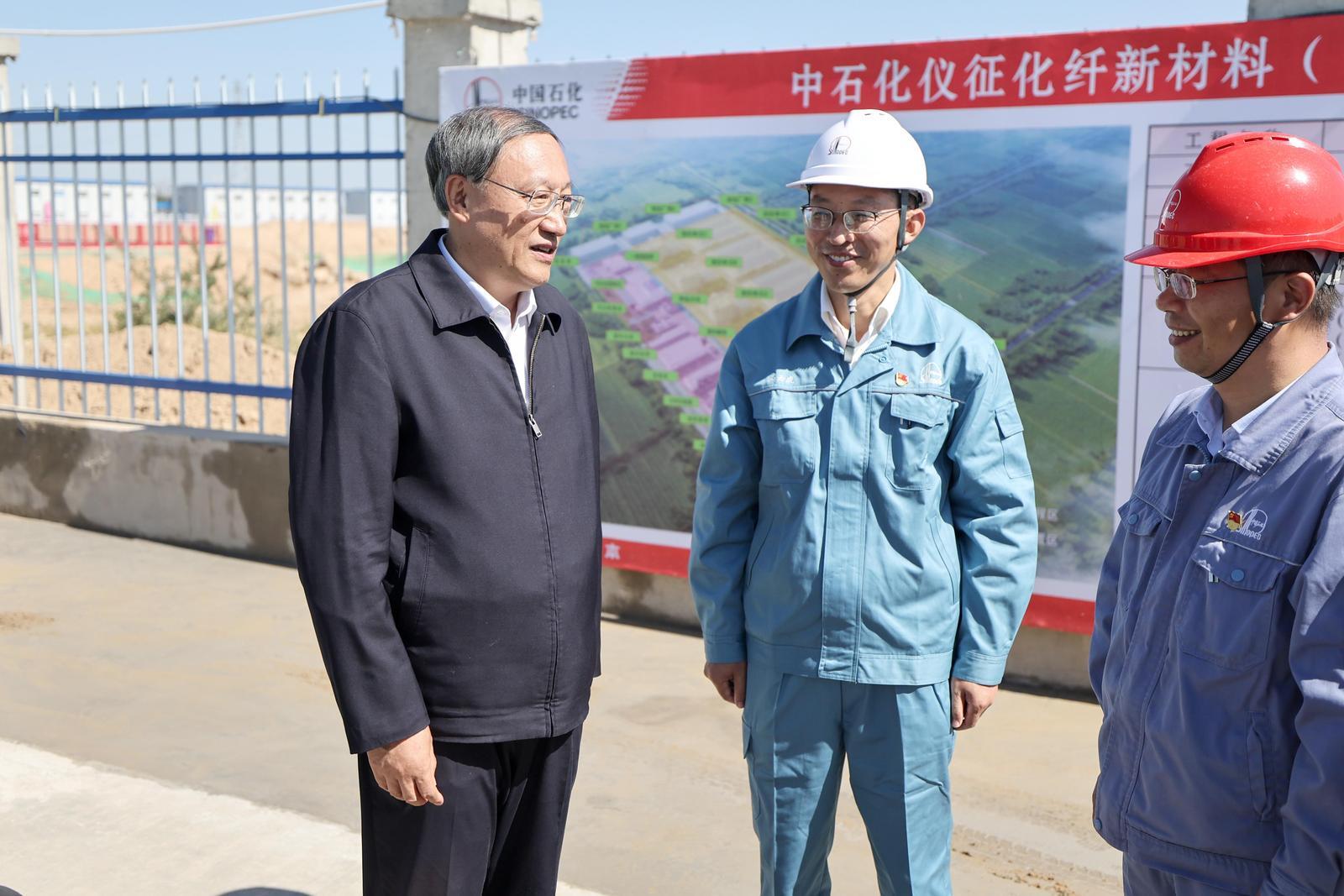 李邑飞在中石化仪征化纤项目现场,调研项目建设情况。