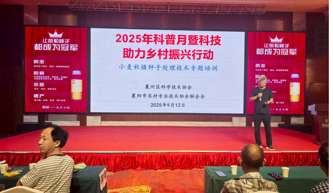近期,市农技协联合会联合郑州绿业元农业科技有限公司,分别在枣阳市和襄州区举办了2025年全国科普月暨科技助力乡村振兴培训行动——小麦秋播种子处理技术专题培训,新型经营主体负责人和大农户近六百余人参加。