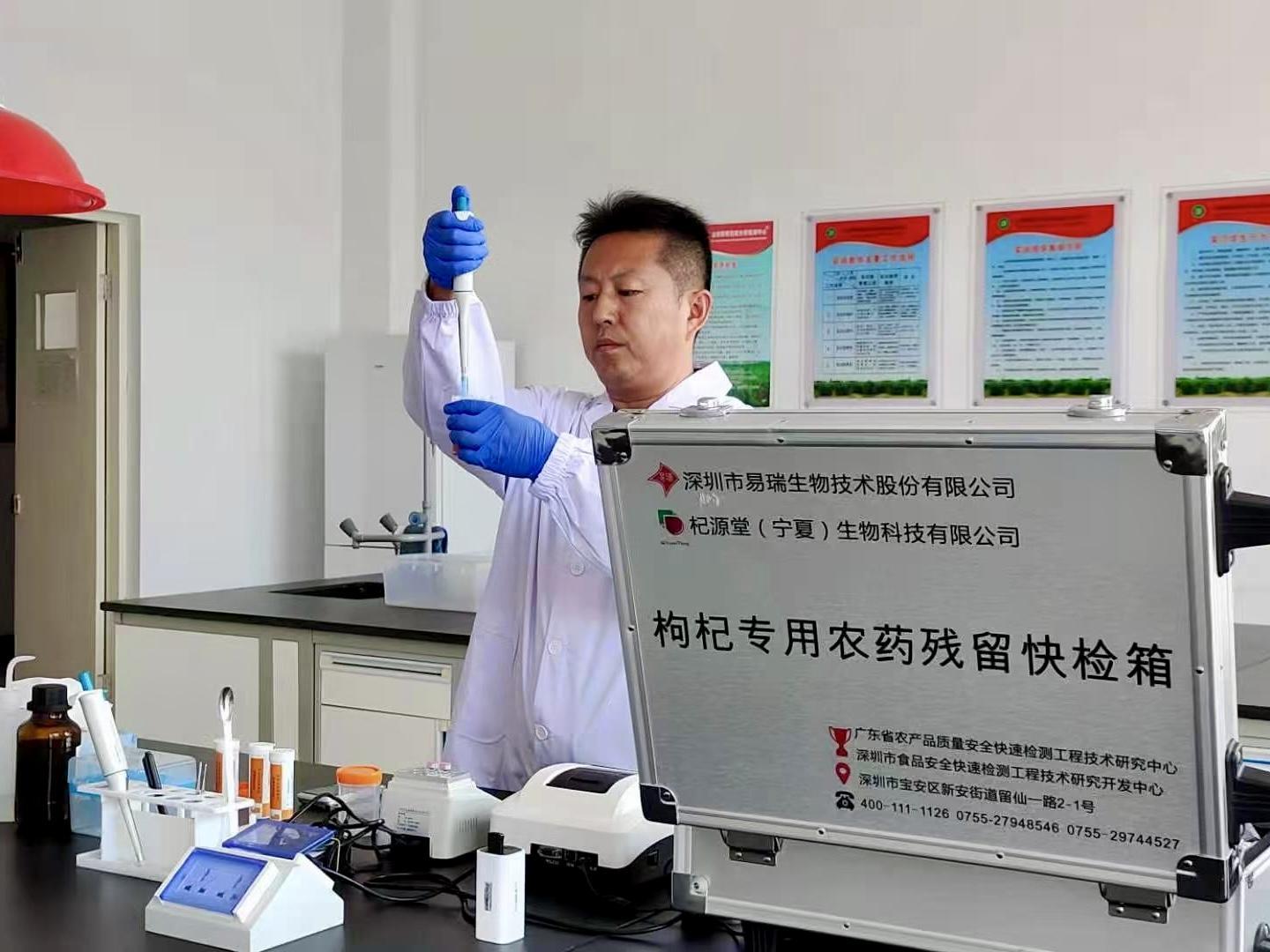 余君伟正在开展枸杞农药残留快速检测实验。