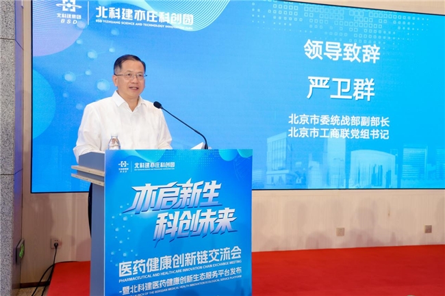 严卫群书记在致辞中强调,医药健康产业作为关系国计民生、经济发展和国家安全的战略性新兴产业,是加快形成新质生产力的重要领域,也是助推北京创新发展“双发动机”之一。经开区作为首都高精尖产业的主阵地、医药健康产业的“领头雁”,拥有从基础研究到产业化的完整产业链条,汇聚了全球顶尖的医药健康企业和创新机构,构建了开放包容的国际创新创业生态,已逐步打造成为全球创新药械的“首发站”和“加速器”。希望通过此次活动,进一步密切与农工党、经开区、北京国资公司的联系与合作,加强市工商联医药健康委员会与经开区各产业部门间的协同配合,为民营企业提供更多项目、资金、人才等方面的支持,形成市区服务工作合力,在推动民营经济和新兴产业、未来产业高质量发展上创造更多创新成果。