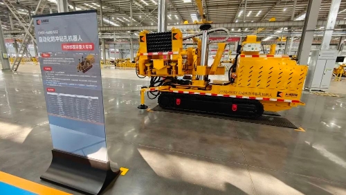 在山东天河科技股份有限公司生产车间展示的自动化防冲钻孔机器人样机。新华社记者萧海川 摄