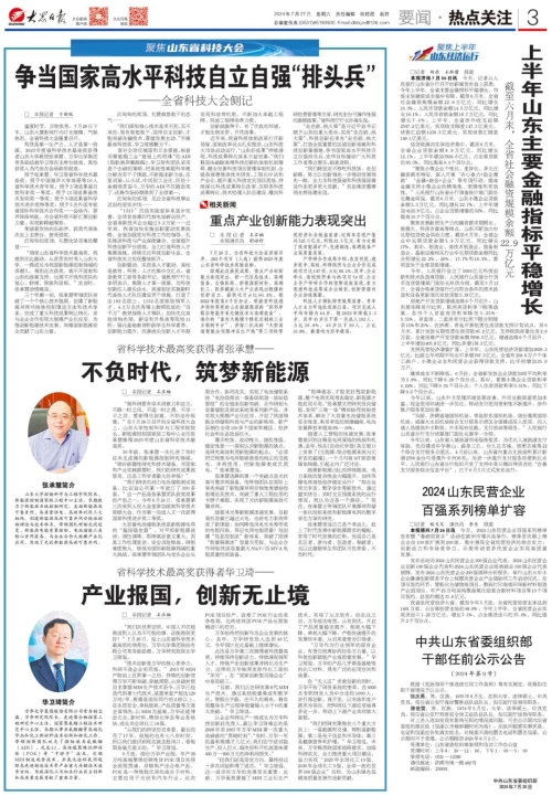 《大众日报》: 争当国家高水平科技自立自强“排头兵”