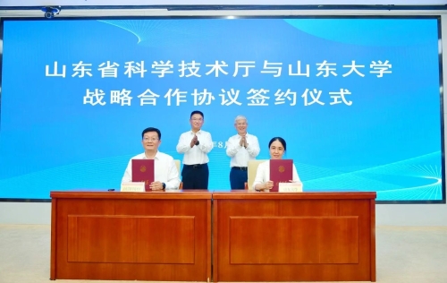 8月1日,省科技厅与山东大学举行战略合作协议签署仪式。省科技厅党组书记、厅长孙海生,山东大学校长、中国工程院院士李术才出席签约仪式并致辞,省科技厅党组成员、副厅长、省外国专家局局长苏学锋,山东大学党委常委、副校长王美琴分别代表双方签署协议。山东大学党委副书记陈宏伟主持签约仪式。