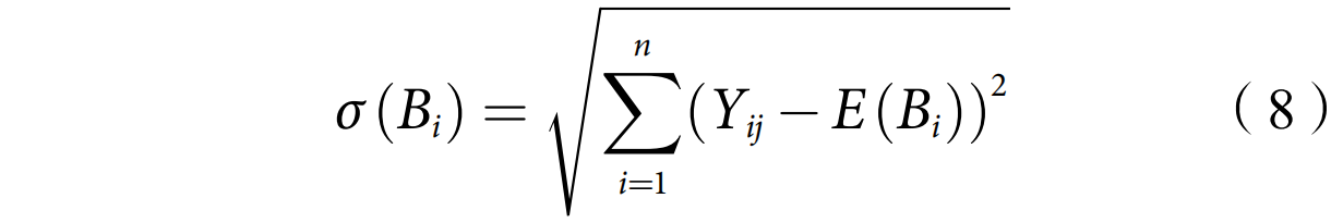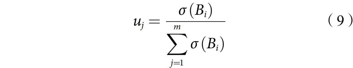 式中,E(Bi)为Bi各指标的均值;Yij为无量纲化的第i个评价因素对应j项指标的标准化值;σ(Bi)为其均方差;uj为第j项评价指标的权重值。