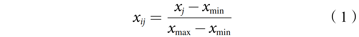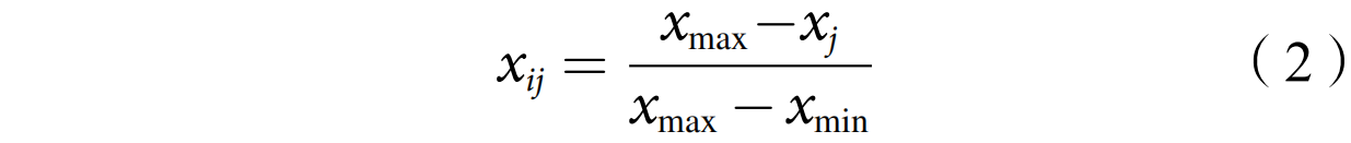 式中,xij为归一化值,xj为指标值,xmax为指标最大值,xmin为指标最小值。