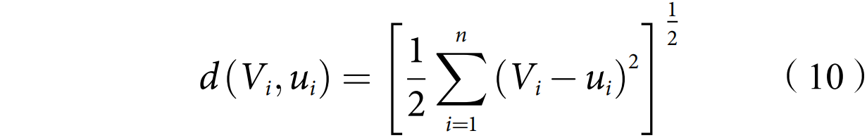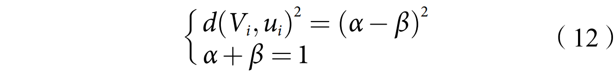 设上述两者权重的距离函数为d(Vi,ui),其公式为: