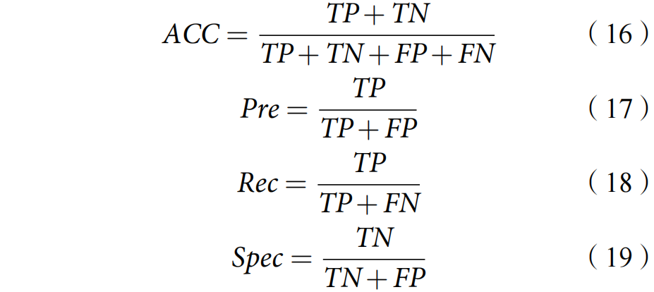 式中,ACC为模型准确率,表示整个研究区内预测正确的面积占比;Pre(Precision)为模型精确率,表示模型预测在淹没中实际淹没的面积占比;Rec(Recall)为模型召回率,表示实际淹没区中预测为淹没区的面积占比;Spec(Specificity)为模型特异性,表示实际为非淹没区中预测为非淹没区的面积占比;TP表示预测为淹没区,实际也为淹没区的面积;TN表示预测为非淹没区,实际也为非淹没区的面积;FP表示预测为淹没区,而实际为非淹没区的面积;FN表示预测为非淹没区,而实际为淹没区的面积。
