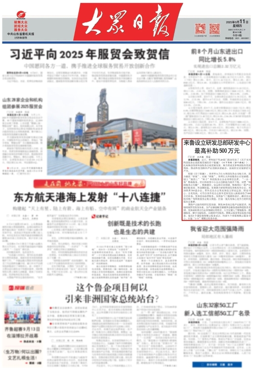 《大众日报》:来鲁设立研发总部研发中心最高补助500万元