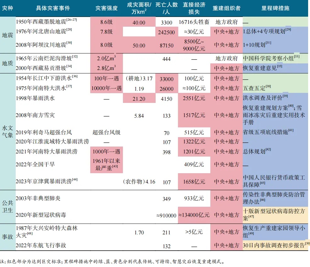 本文旨在从系统演化的宏观视角,构建一个理解中国巨灾灾后恢复重建历史发展的理论模型。文章首先明确了综合灾害强度(达到历史最大值/超过百年一遇)、人员伤亡(死亡人数超1万人)、经济损失(超1000亿元¥)等多维度的巨灾定义和划分标准。随后,论文借鉴霍尔三维结构和“物理-事理-人理”系统方法论,构建了一个包含“发展阶段-关键活动-科学技术”三个维度的巨灾灾后恢复重建系统模型,将其视为一个复杂的开放巨系统。在此基础上,文章深入剖析了该系统随“人地关系”演进所呈现出的三种典型模式(①以短期物质恢复为主的传统模式②强调经济、社会、环境协调发展的可持续模式③运用大数据、人工智能等科技进行智能化应对的智慧模式)。论文通过对比不同历史时期的洪水和地震等巨灾的恢复重建措施,清晰展示了这一演进路径。最后,文章总结了中国在巨灾灾后恢复重建中积累的主要经验(①发挥体制优势与法律保障②加强跨部门协调与信息共享③进行智能监测与精准评估④救助与巨灾保险),为提升未来巨灾应对能力提供了重要借鉴。