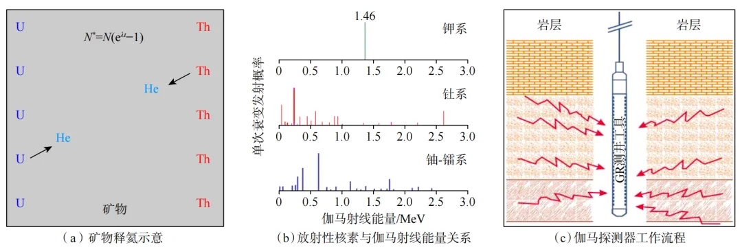 氦气资源潜力自然伽马能谱测井评估方法原理示意