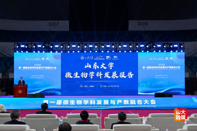 2025年10月18日,第一届微生物学科发展与产教融合大会在山东大学青岛校区举行,旨在总结山东大学微生物学科75年与微生物改造技术全国重点实验室30年的发展成就,并推动学科链、创新链、产业链、人才链的深度融合。会议由山东大学主办,青岛市科协支持,来自海内外的学界嘉宾及校友、企业、部分新闻媒体代表等1000余人齐聚一堂,共同参与本次大会。