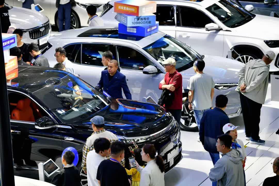 车展上,市民对新款车辆热情高涨。