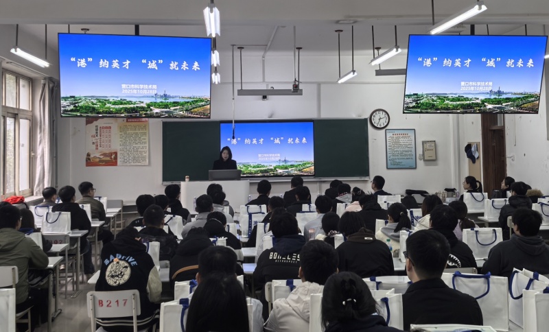 宣讲活动以“城市宣传+政策解读+岗位对接+互动答疑”的形式展开。活动现场播放了“‘港’纳英才‘城’就未来”主题宣传片,从产业发展、宜居环境、创新生态等多维度展现营口的城市魅力与发展活力,引发在场学子广泛关注。市科技局相关科室负责同志围绕营口产业布局、经济发展态势及人才政策进行宣讲,重点解读毕业生就业补贴、人才安居保障等核心政策,有效传递营口招才引智的诚意与决心。敬业(营口)中板有限公司、辽宁嘉顺科技有限公司企业代表依次围绕企业概况、核心业务及招聘岗位需求进行宣讲,学生们围绕人才政策、岗位需求等踊跃提问,投递简历60余份,活动现场气氛热烈。
