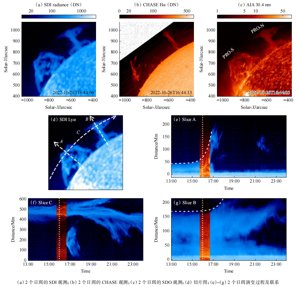 图16 2022 年 10 月 26 日 2 个日珥的 SDI 和 CHASE 及 SDO 观测