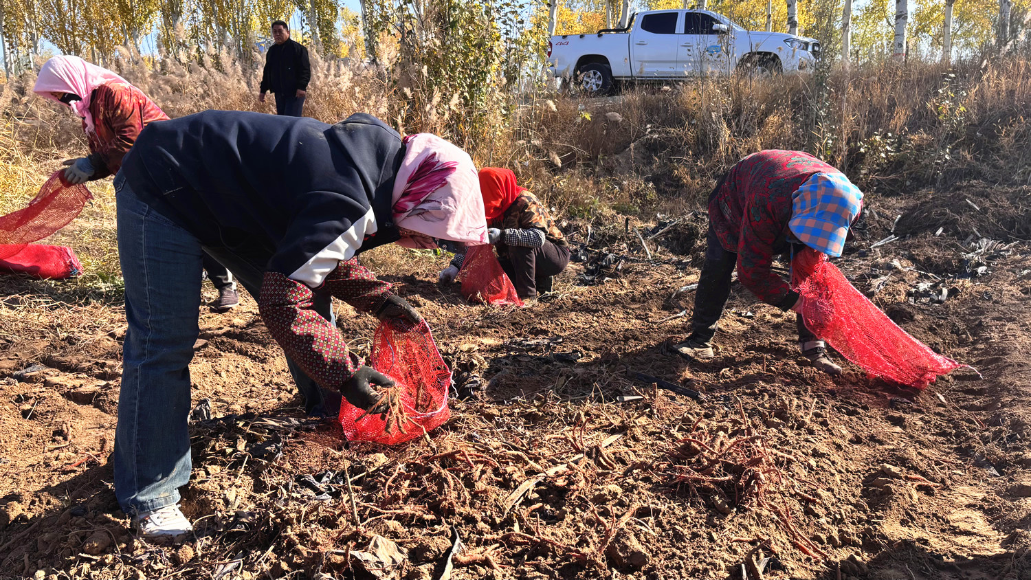 深秋时节,灵武市梧桐树乡北滩村的百亩丹参基地里一派繁忙景象。10月31日,随着挖药机的轰鸣声,一垄垄饱满粗壮的丹参破土而出,村民们麻利地捡拾、装筐。这片扎根乡土的“金药材”,正成为北滩村乡村振兴的亮丽名片。