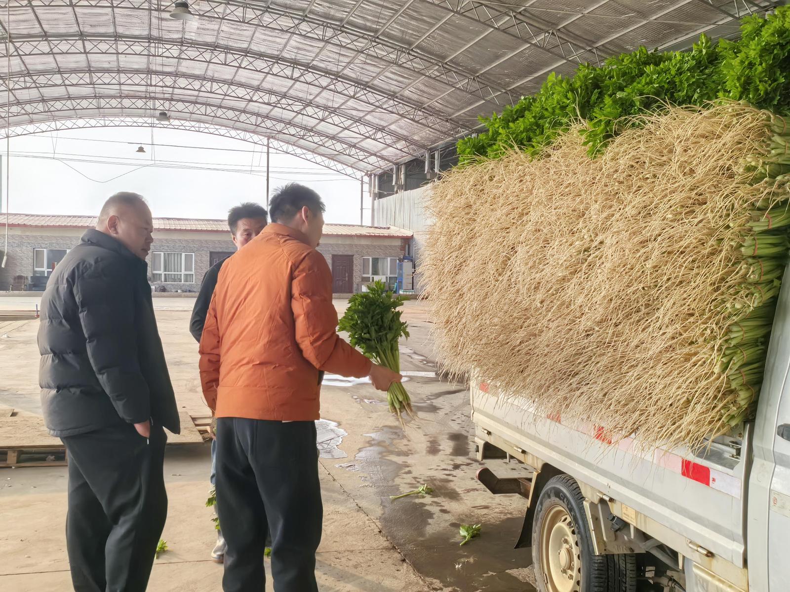 永宁县宁夏福鲜农业科技有限公司的集配中心内,山东客商正在检查香芹品质。