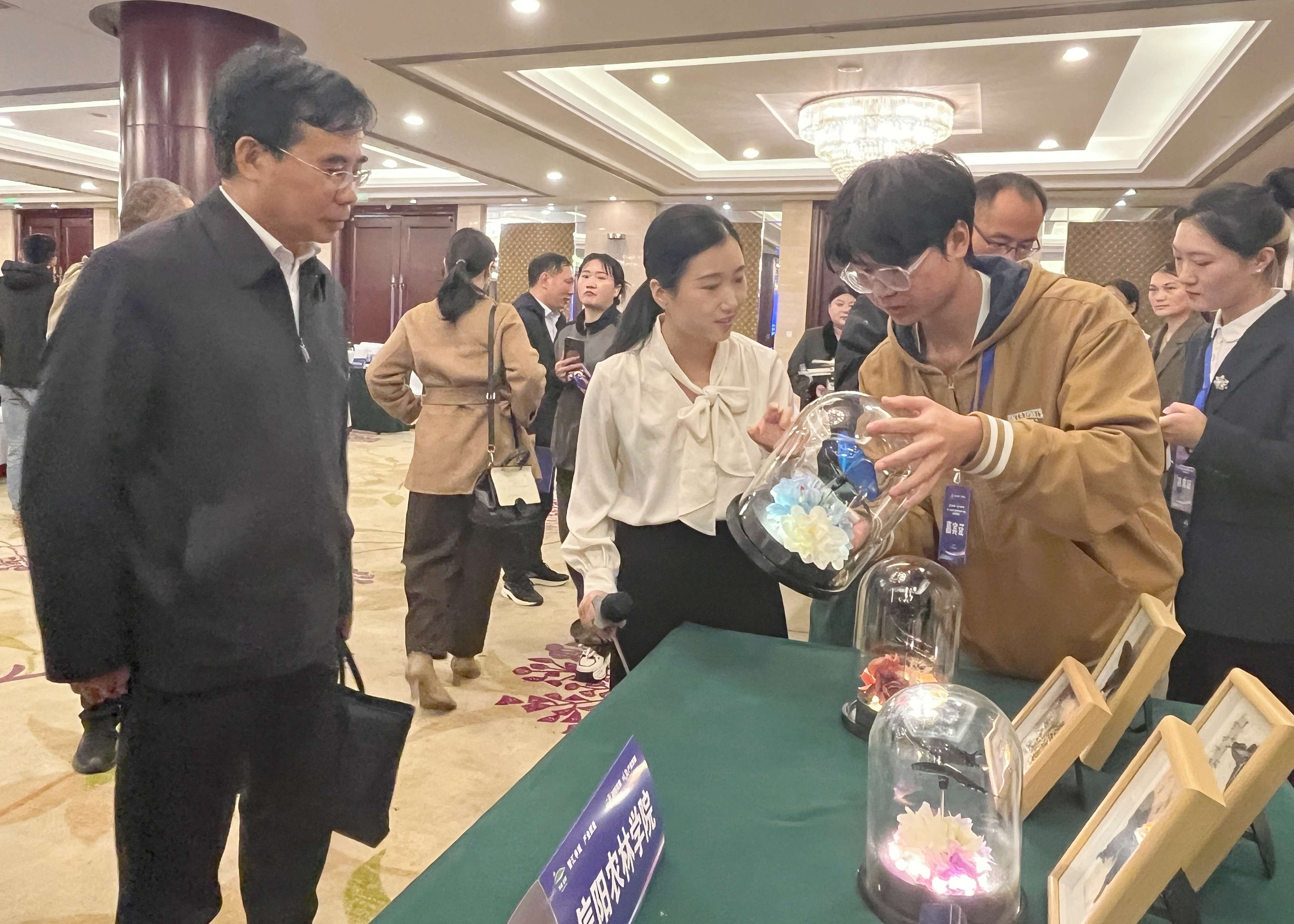 活动中,孔金生作了题为《人工智能赋能现代制造业高质量发展》的精彩报告,为与会人员带来了前沿的学术观点和创新思路。随后,信阳星原智能科技有限公司、三元光电、中晶工程材料(信阳)有限公司、信阳市津乾机械设备制造有限公司等单位负责人及信阳师范大学、信阳农林学院等高校师生,分别围绕“发展超薄半导体发热涂层技术产业化”“点秸成金——开启农业废弃物资源化的破局新范式”“中晶轻质玻化微珠复合墙板新技术”等10个主题进行了路演以及产品展示、推介。