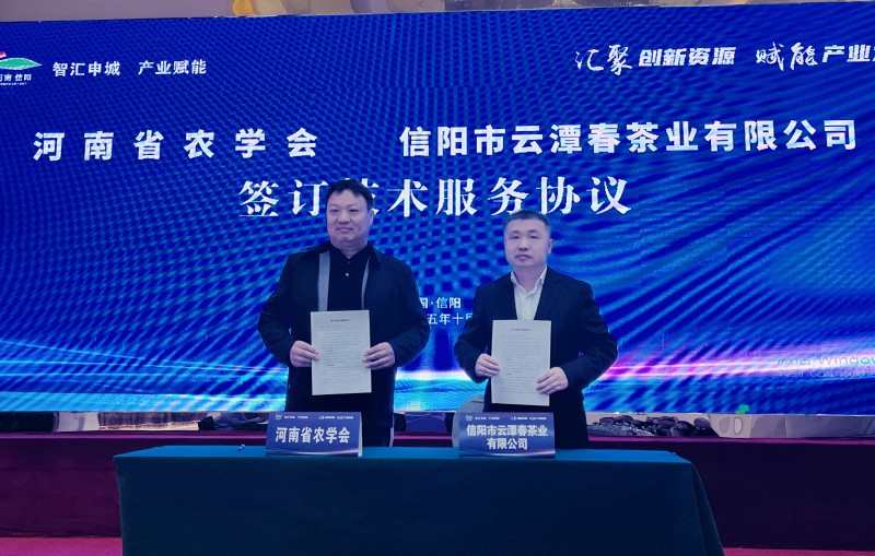 技术服务协议签约仪式是此次活动的高潮环节。信阳市云潭春茶业有限公司与河南省农学会现场签订合作协议,标志着信阳茶企与省级科研力量的合作正式落地,为产业转型升级按下“加速键”。