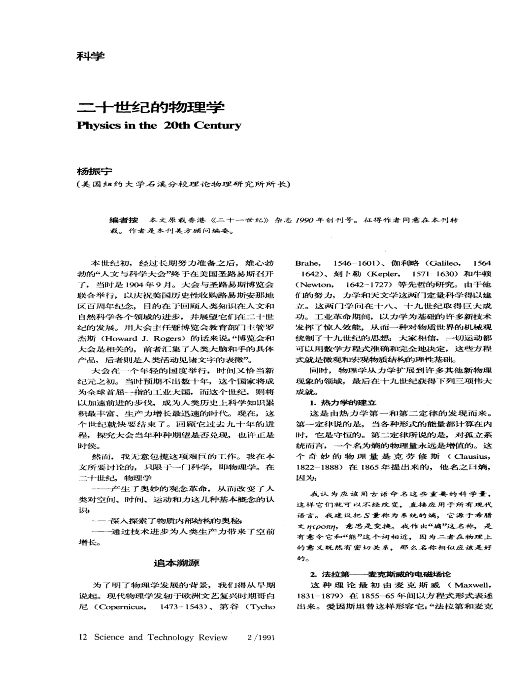 为表达对杨振宁先生的崇高敬意与深切缅怀,我们重刊1991年第2期杨振宁先生撰文的《二十世纪的物理学》,以志纪念。