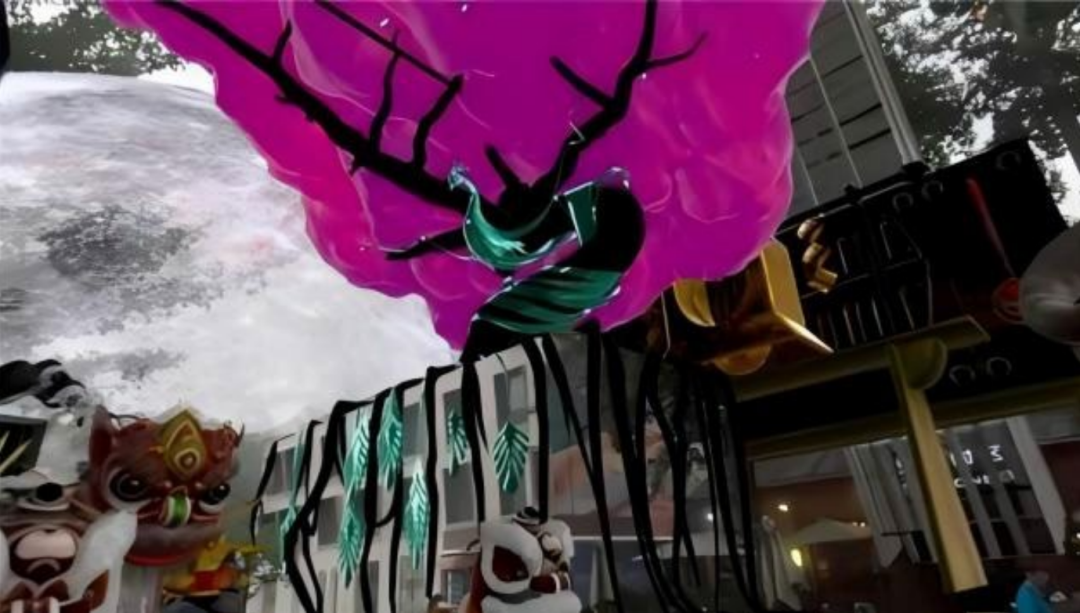 2024年,北京意景技术有限责任公司与重庆幻景数研科技有限公司创新性地打造了全球首个线下MR大空间体验项目《ASTATION 山海空间》。用户佩戴2024年苹果公司发售的Vision Pro MR设备,游览10余处1∶1还原的VR巨型奇观,感受上古神话场景,如天柱不周山、女娲、旋飞的精卫及《山海经》中的各类奇珍异兽(图19)。用户通过主动探索场景、参与互动体验,能够深入洞悉传统文化内涵,激发强烈的情感共鸣,有力推动传统文化在数字化时代的广泛传播与深度传承。