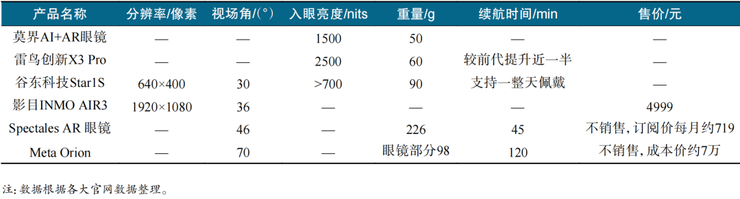 表1 2024年国内外AI+AR眼镜性能参数对比