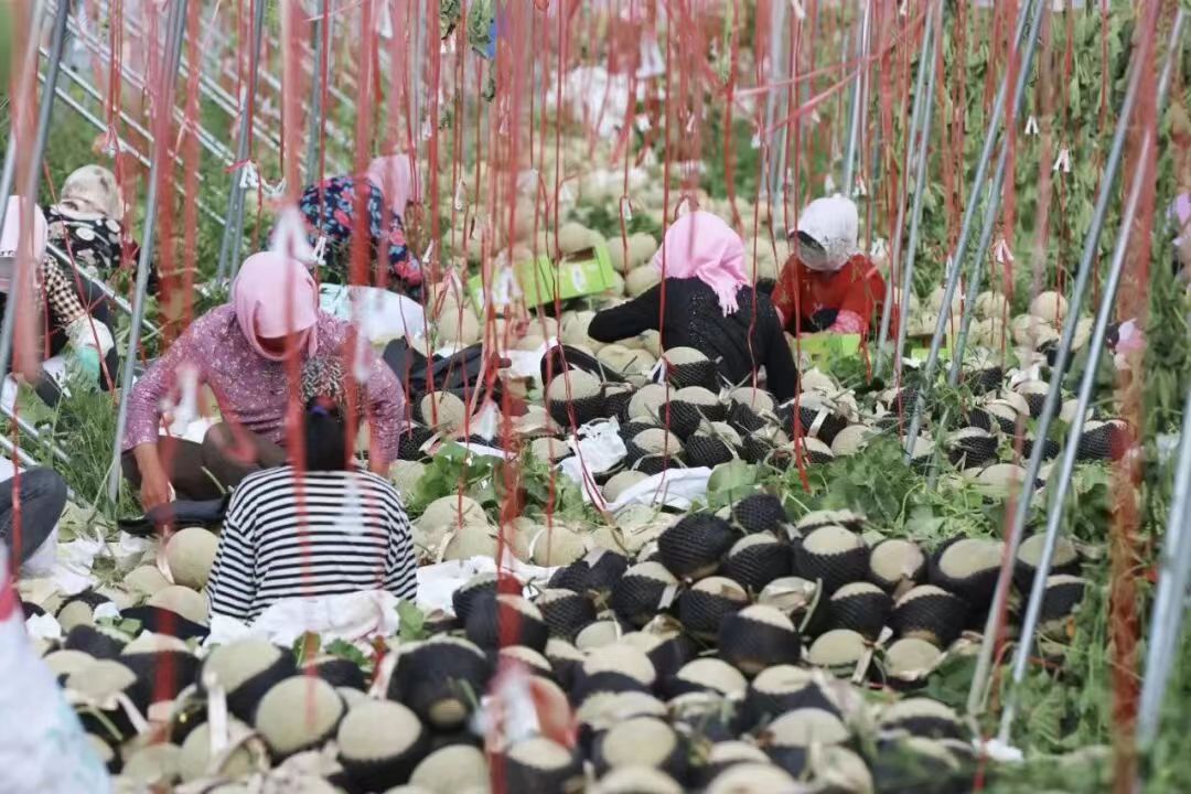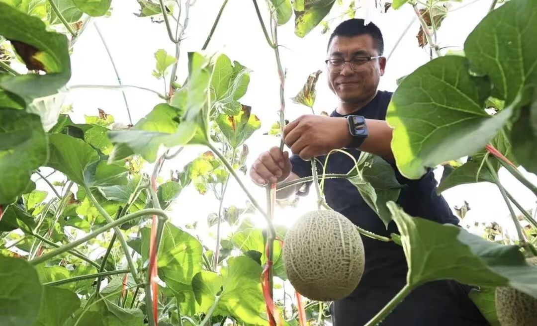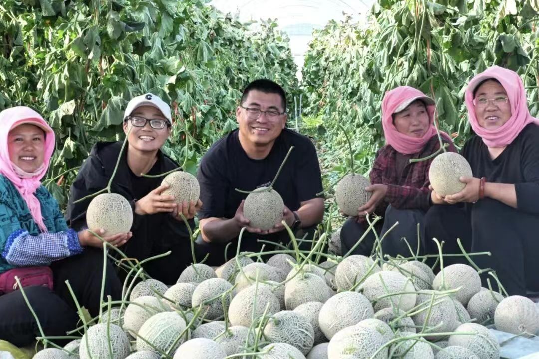 “在家门口上班,既能照顾家,一年还能挣两万多,比外出打工踏实多了!”马晓琴的话里,藏着基地务工人员的共同心声。眼下正是蜜瓜采摘旺季,基地里像马晓琴这样的务工者有300余人。2025年,基地常年稳定就业人数超30人,在育苗、定植、抹芽、吊蔓、授粉、选瓜、采收、分拣包装等作业流程上用工超500人次,年发放工资总额超1200万元,个人月收入最高可达8000多元,有效拓宽了周边地区农民务工增收渠道。