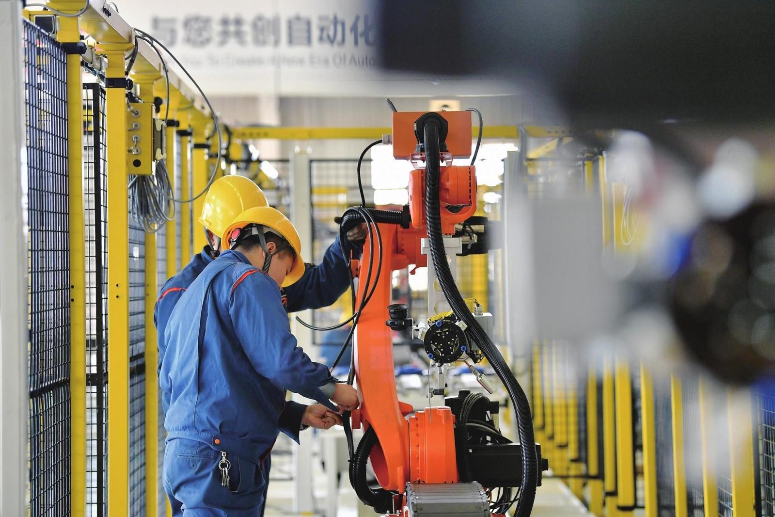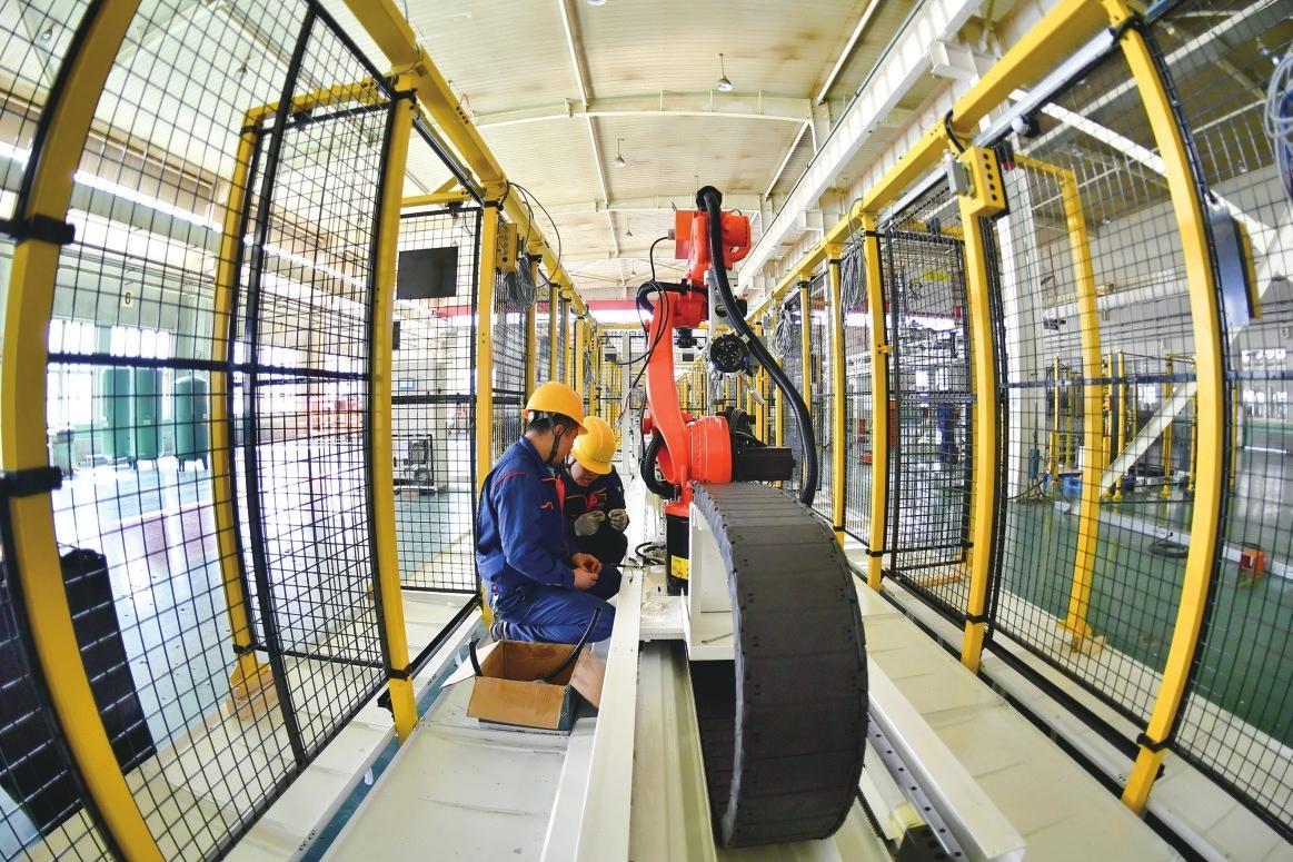 在宁夏巨能机器人股份有限公司的生产车间,工作人员对设备进行调试