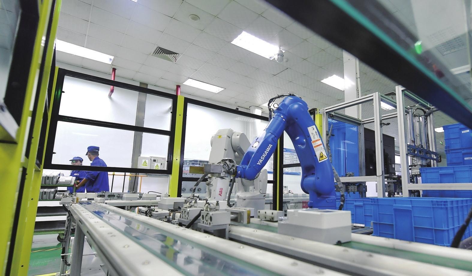 在宁夏隆基宁光仪表股份有限公司生产车间,智能机器人进行仪表加工