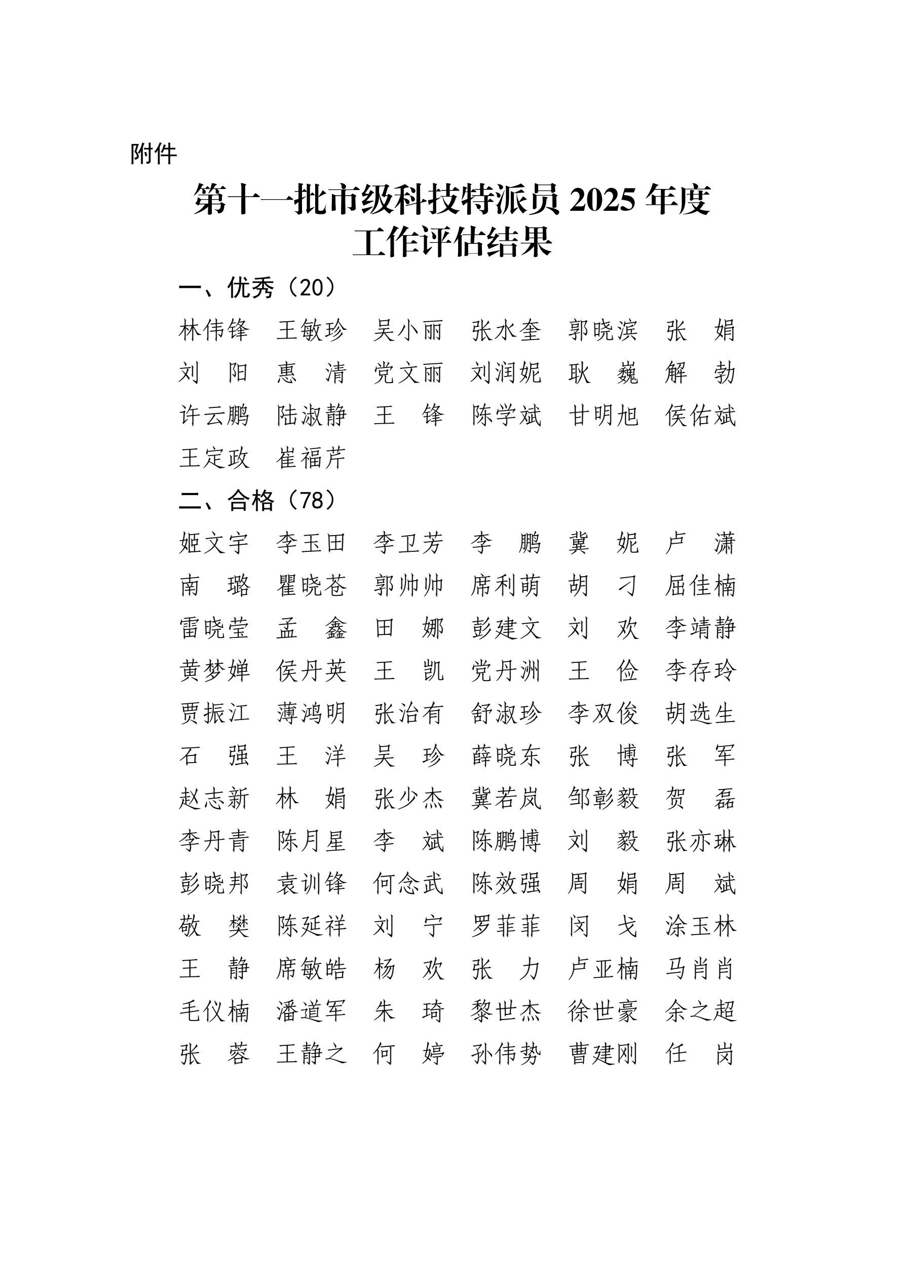 附件:第十一批市级科技特派员2025年度工作评估结果