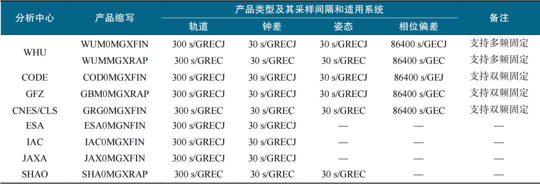 表2 多GNSS系统精密产品(截至2025年4月)