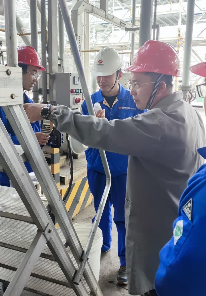 2025年7月,华东理工大学吕文杰教授(右一)在国能宁煤烯烃一分公司,现场指导优化生产水系统,以达成减污降碳协同增效目标。