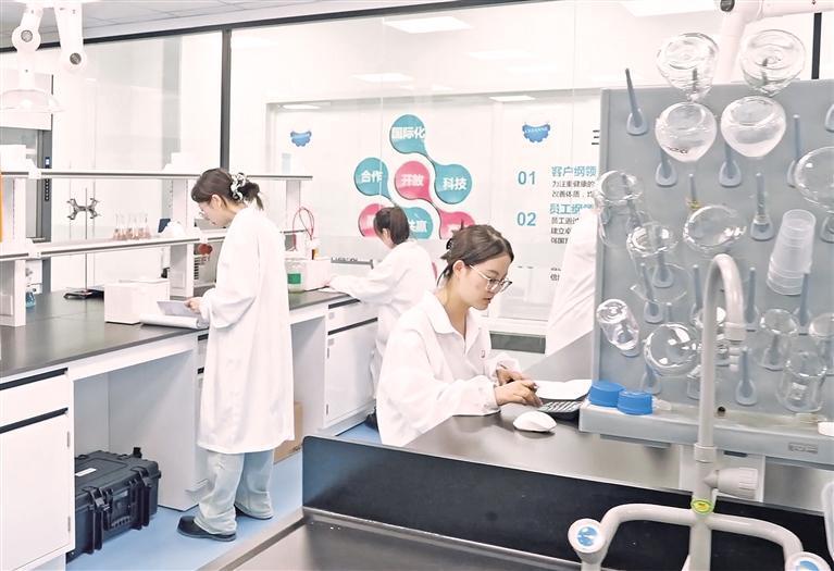 塞尚乳业研发团队在做实验。
