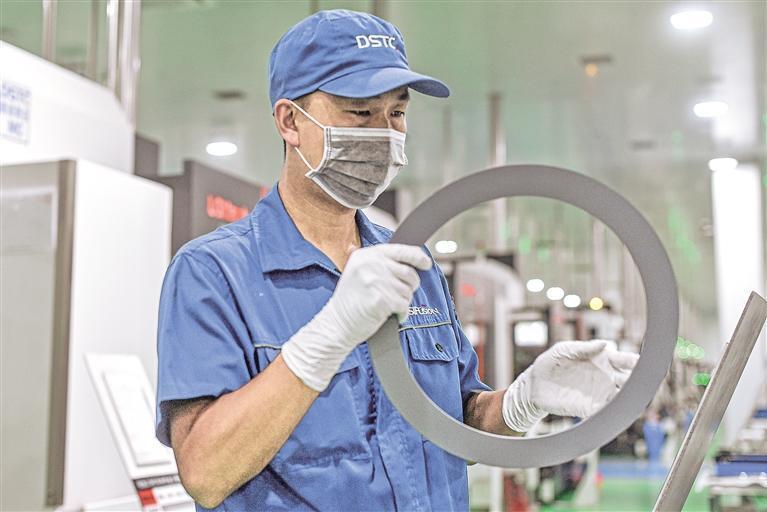 宁夏盾源聚芯半导体科技股份有限公司工人在加工精密硅制品。
