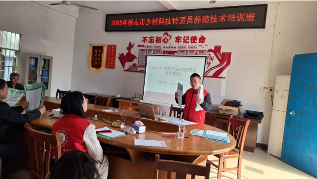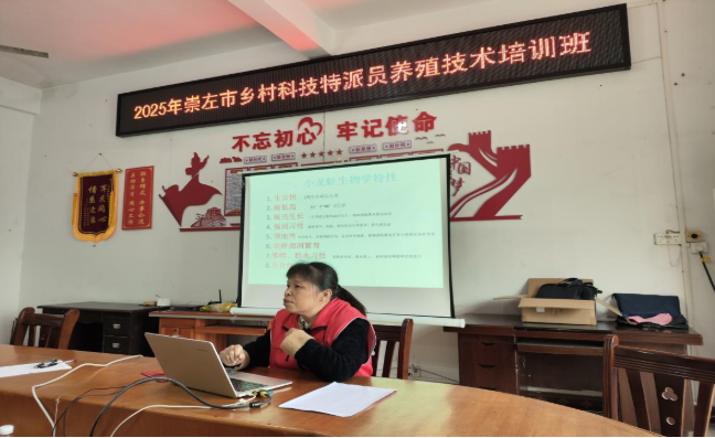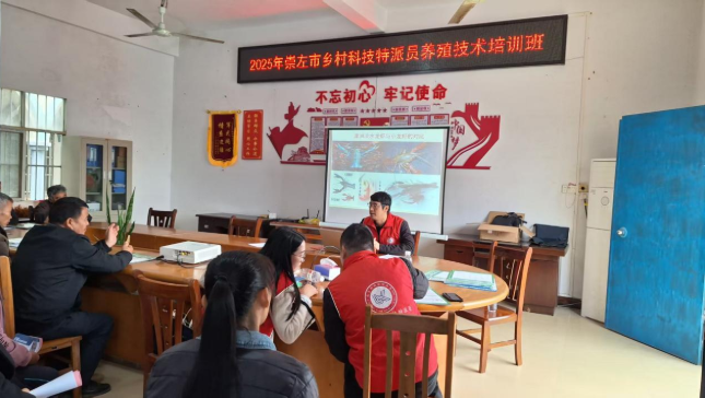 宁明县现有稻田种植面积7.45万亩,其中水源丰富,适合冬季稻田小龙虾养殖的稻田超万亩,为充分发挥当地稻田综合种养潜力,助力宁明县打造万亩富硒小龙虾产业发展,2025年12月4日,自治区水产引育种中心、崇左市水产畜牧技术服务中心、宁明县农业农村局乡村科技特派员黄斐群等8人组团赴宁明县,对祥春村50名群众进行冬季稻田小龙虾养殖技术培训和水产品质量安全常识宣传;此外,还赴崇左市宁明县万亩富硒小龙虾核心示范区,指导如何做好冬季稻虾养殖管理。
