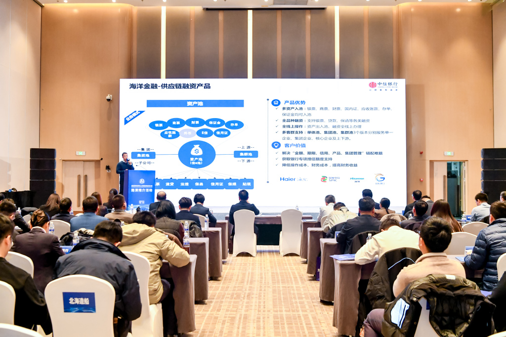 路演推介环节务实高效,系统构建起“政策+资本+场景”支撑体系。青岛高科技工业园管理委员会副主任宋宁宁从产业优势、创新基因、品质活力三个维度对青岛崂山海洋人工智能产业集聚区进行了推介;中信银行、浦发银行、光大银行结合最新金融政策,分别介绍了海洋供应链服务体系、“浦发蓝”、海洋经济金融产品等特色产品与服务,为优秀项目落地提供全方位金融支持。来自北京、山东、江苏、广东等地的7家优质企业依次登台路演,集中展示海洋AI大模型、海洋数字孪生、智能预测运维、气象智能导航、智慧渔业等前沿技术成果。华通金控、迈通投资、科姆创等十余家投资机构现场参与对接,精准挖掘具有产业化潜力的优质项目。
