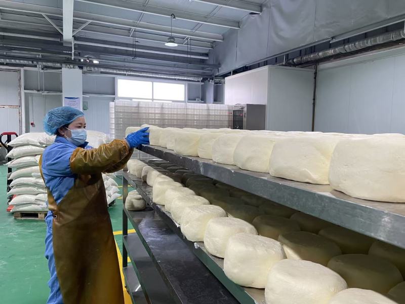 在宁夏财硕生物科技有限公司经理丁丁的指引下,记者一行走进生产车间。生鲜乳经奶油分离机被分离为脂肪与蛋白质两大核心成分:脂肪部分被加工成脂肪含量约40%的稀奶油、脂肪含量约80%的黄油,奔赴青岛、广州、云南、西藏等省(区)市的烘焙门店、市民餐桌;蛋白质部分则制成食品级干酪素,广泛应用于食品加工及医药生产领域。