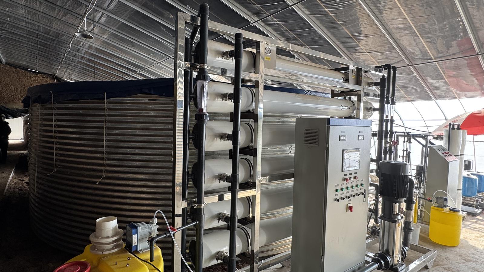 “以前没这套设备时,我们只能用盐分高的地下水或混合黄河水灌溉,冬天水结冰没法用,高峰期同时浇水还会出现水压不足,作物长得差、产量低。”宝丰村村民刘毅坦言,如今通过项目实施的反离子渗透膜技术脱掉盐碱水中的盐分,可就地利用本地水资源灌溉,周期也很稳定。