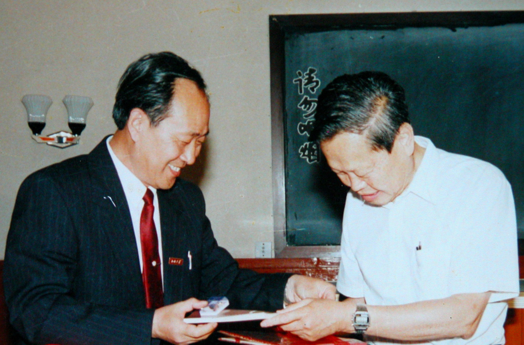1993年彭堃墀(左)与访问山西大学的杨振宁(右)