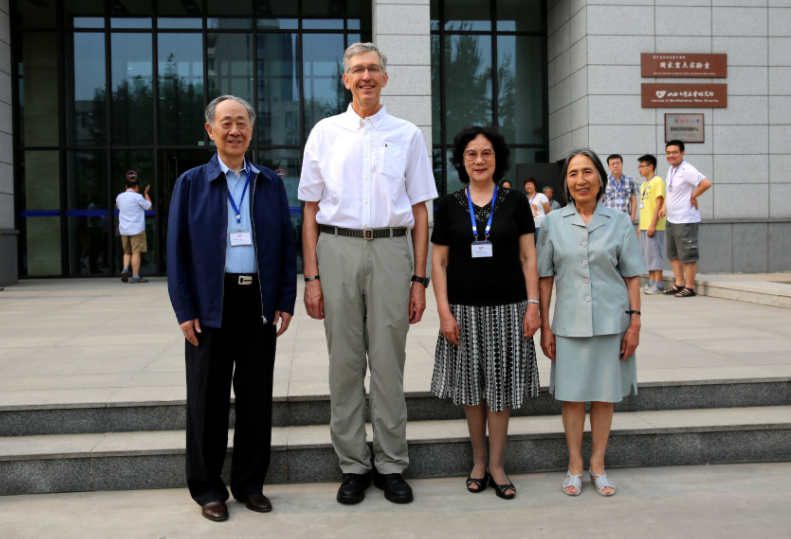 彭堃墀(左一)与吴令安(右一)、谢常德(右二)和Jeff Kimble(左二)