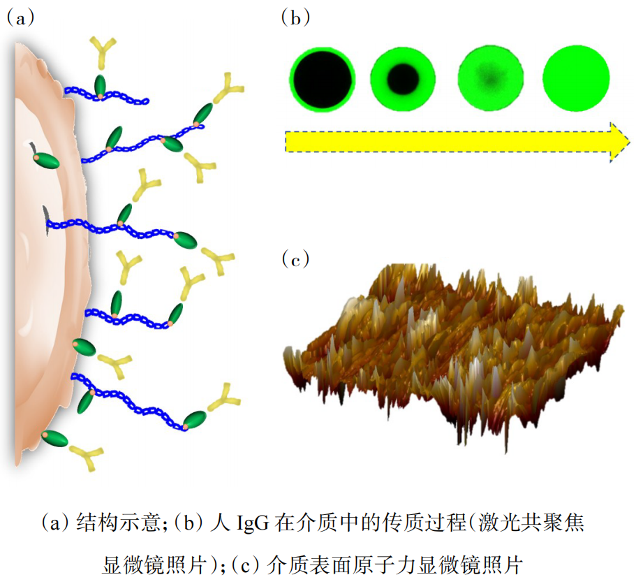 (3)表面性质。表面性质太弱,易造成结合力不够,导致载量低;表面性质过强,生物分子与介质之间则因过度结合而导致失活。