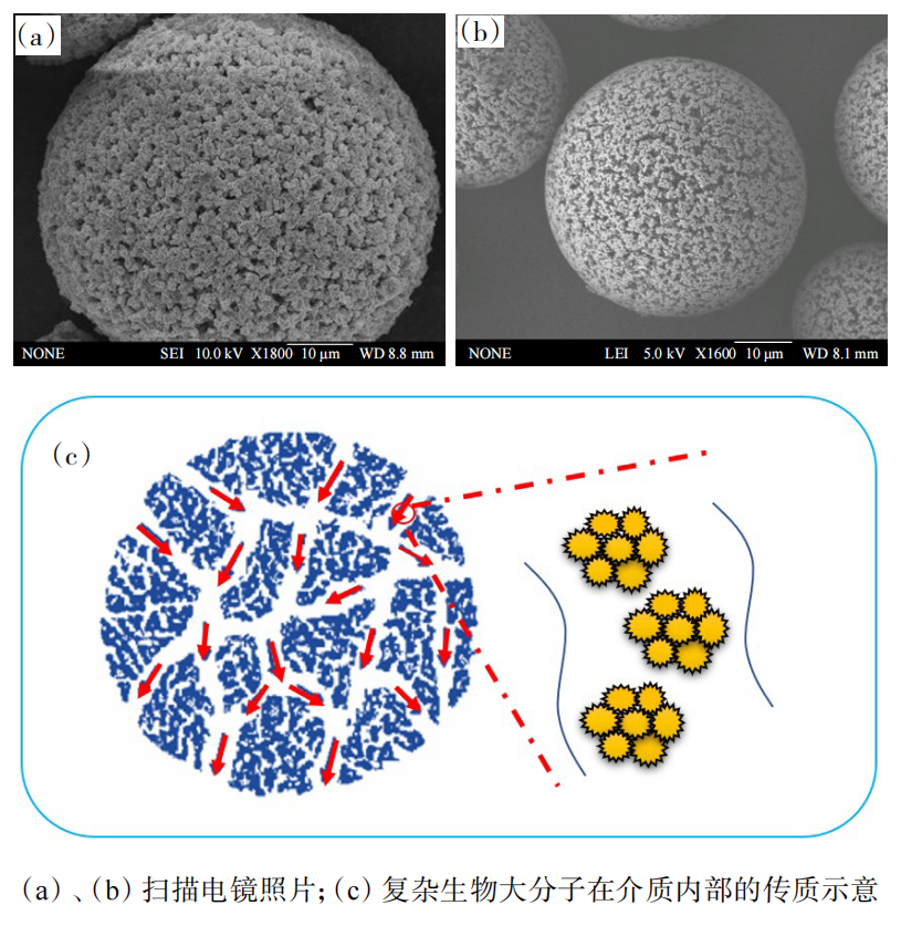 (2)孔结构。孔径越大,表面积则越小,介质对生物分子的载量会相应降低。孔径均一度低会造成分子传质过程的差异从而影响分离精度。