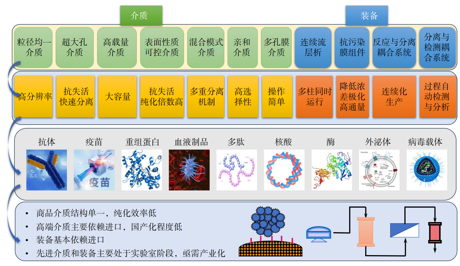 图6 生物药制造先进分离介质与集成装备