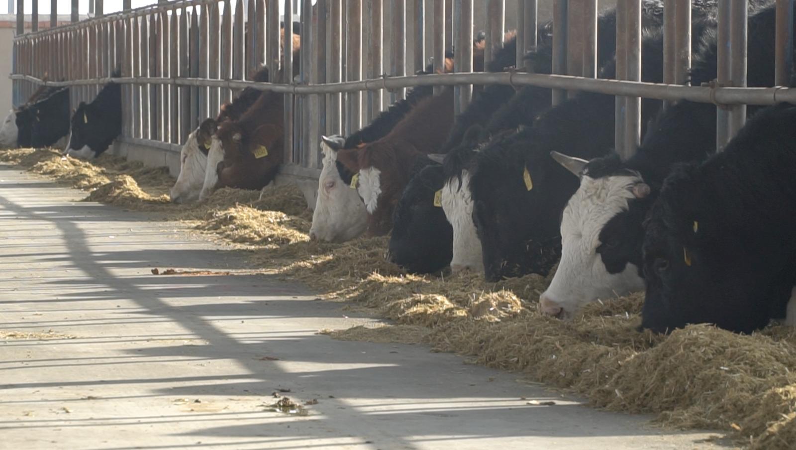 马学磊的牛场内,牛儿正悠闲地吃着“定制饭”