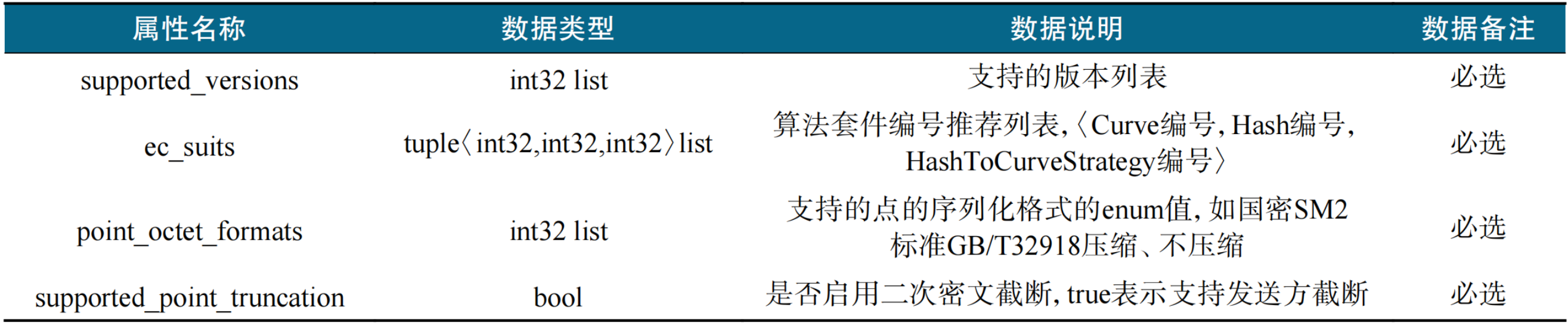表2 已有规范中ECDH−PSI算法参数协商数据结构示例