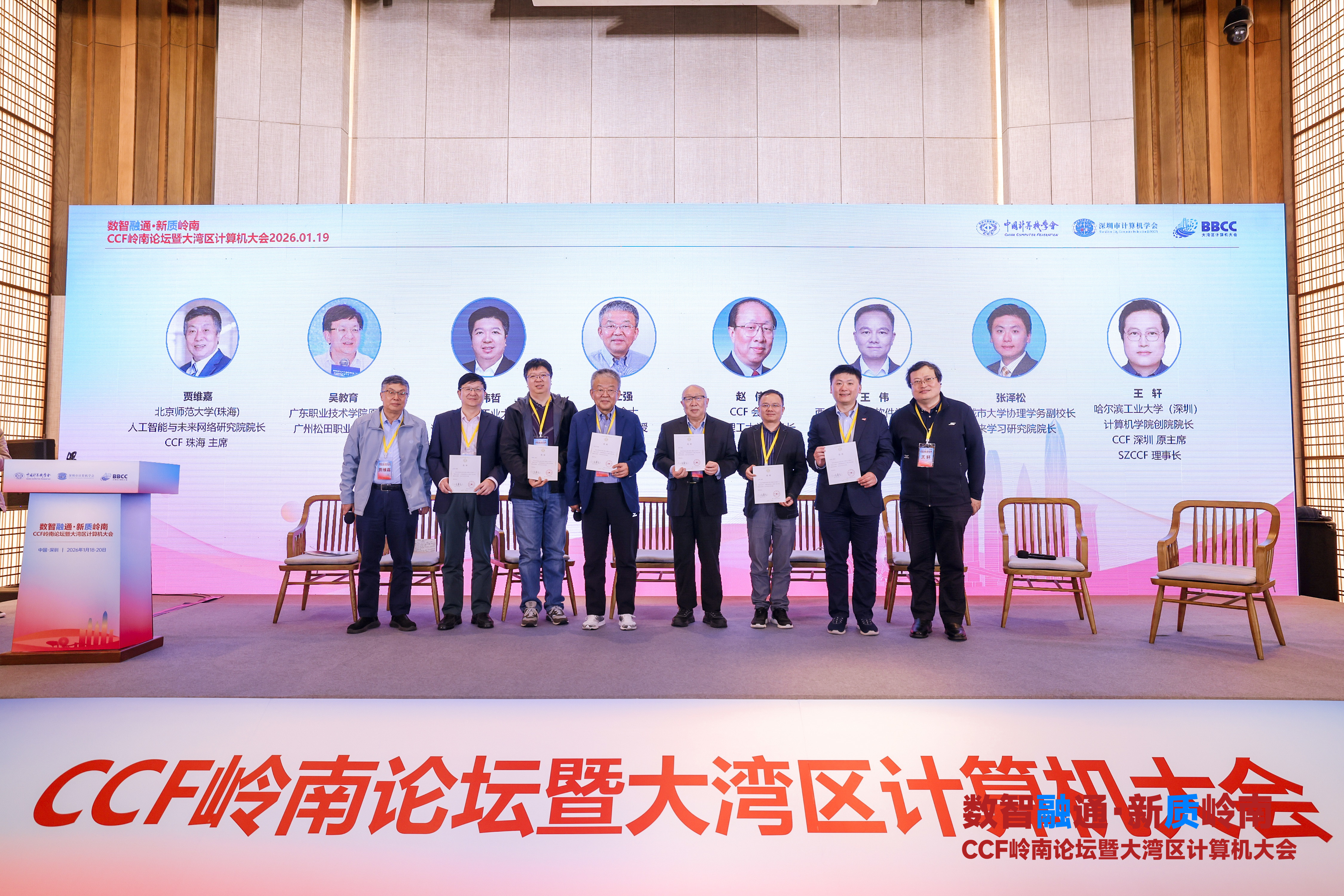 恰逢十五五开局之年、2026年APEC会议将在深圳举办的重要契机,第三届CCF岭南论坛暨大湾区计算机大会(Big Bay Computer Congress, 简称BBCC)于1月19日在深圳南山隆重开幕。本次大会积极响应二十大四中全会关于科技创新、区域融通的指导要求,以续写“春天的数智故事”为内在,汇聚5位院士、12位校级领导、25位高校院长、16位CCF与IEEE会士及500余名行业代表,为大湾区科创与产业升级注入强劲动能。同时立足往届成果、借势APEC东风,联动十余城CCF分部及BBCC湾区同盟,特别开设广邀校长院长齐聚“莲花山论剑”思辨论坛,聚焦AI时代的教育变革,共探计算机拔尖人才培养的新视角,持续优化“政产学研创”协同生态。
