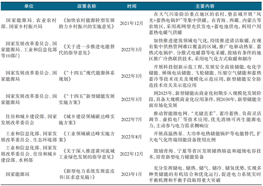 表1 国家层面相关储热政策