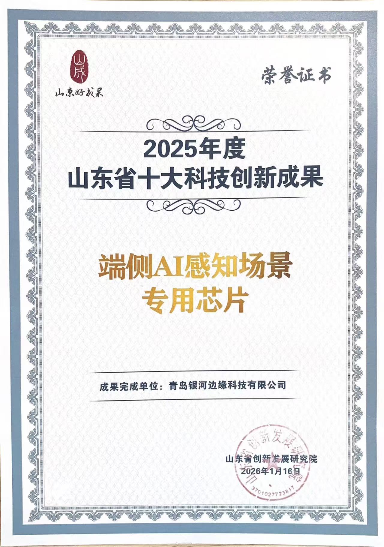 1月25日,2025年度山东省十大科技创新成果发布活动在山东卫视专题播出,由国家高端智能化家用电器创新中心孵化的芯片企业青岛银河边缘科技有限公司,其自主研发的“端侧AI系列场景芯片”成功入选榜单。