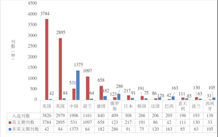 《WJCI报告》2025版收录各国英文期刊与非英文期刊数量。中国科协 供图